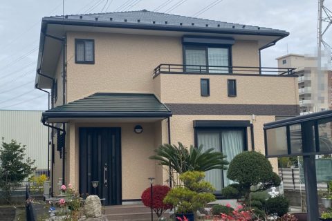 暖かみのあるベージュ系の外壁に、遮熱フッ素の屋根の色を照らして、全体として優しく上品で、経年劣化が目立ちにくい外観になりました🥰