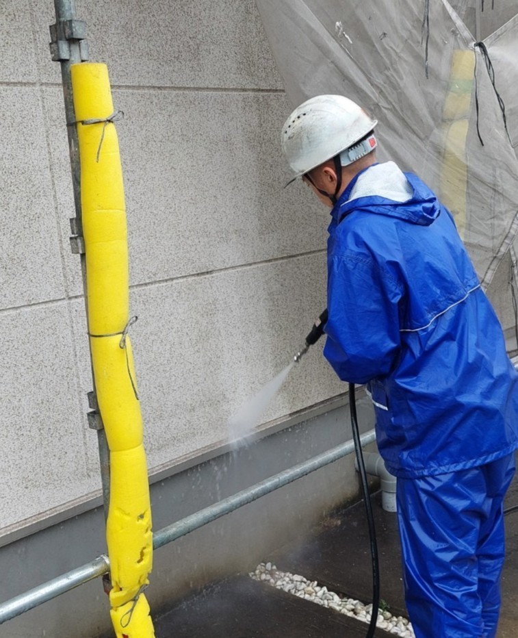 洗浄します。※近隣の方々にご迷惑をお掛けする可能性がある期間ですので、
