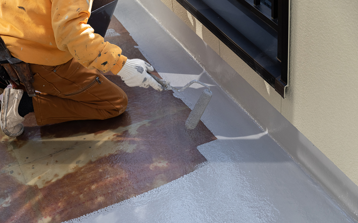ベランダや屋上の防水施工を行い、雨水の浸入を防ぎます。ウレタン防水など、建物に最適な工法を提案します。